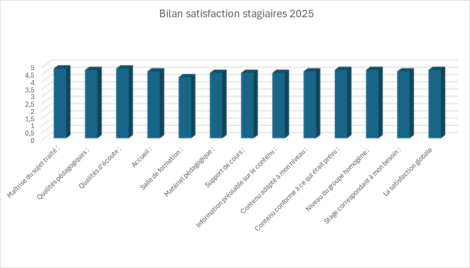 La note satisfaction globale de nos stagiaires en 2025 était de 18.88/20